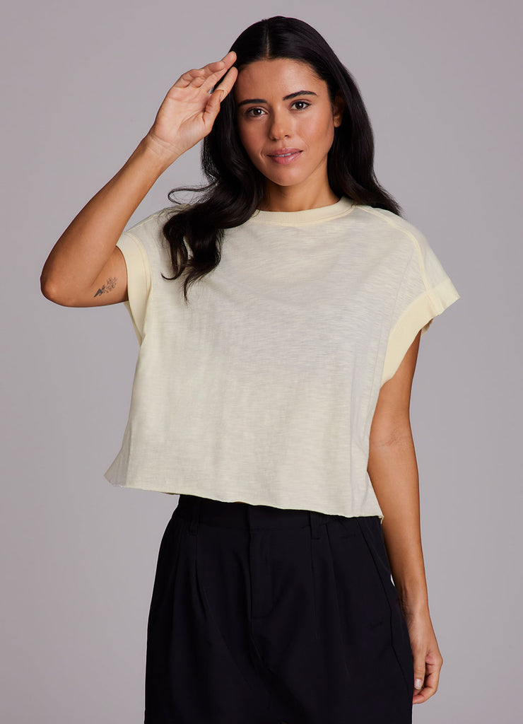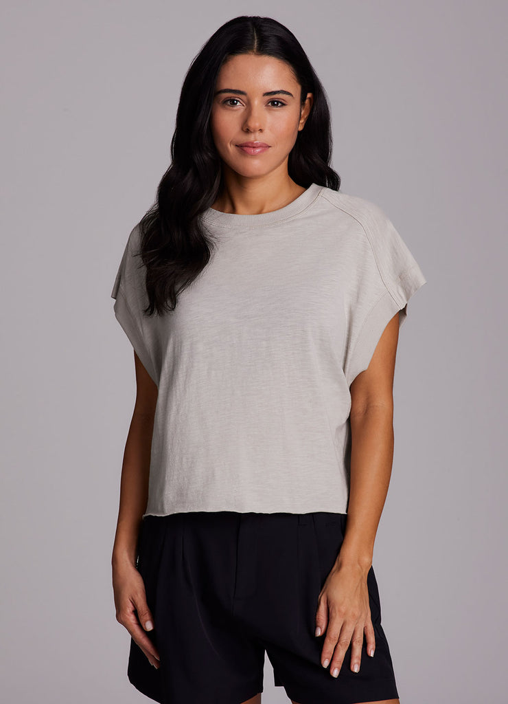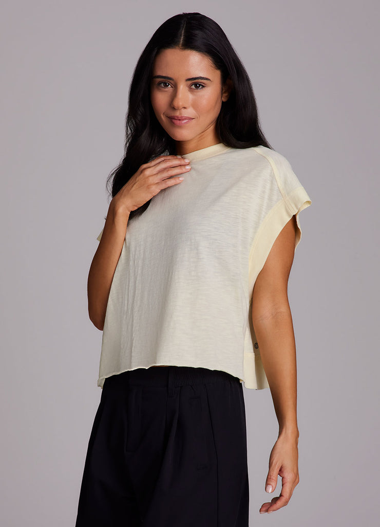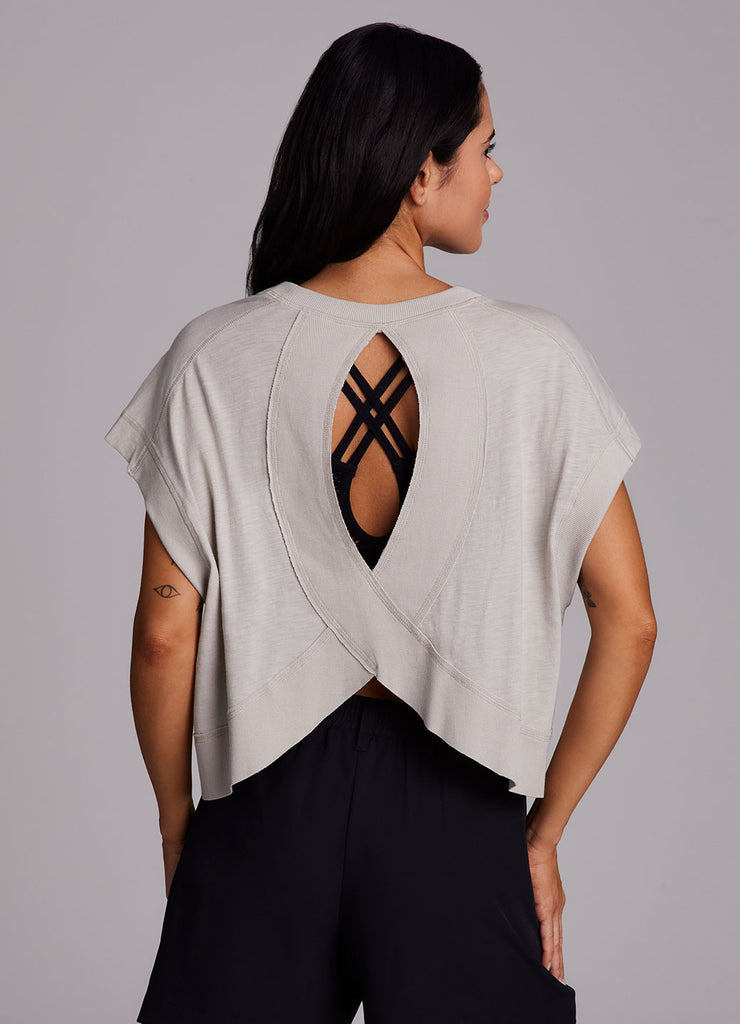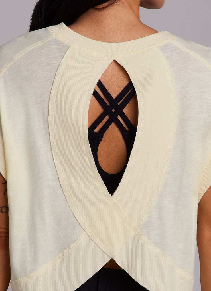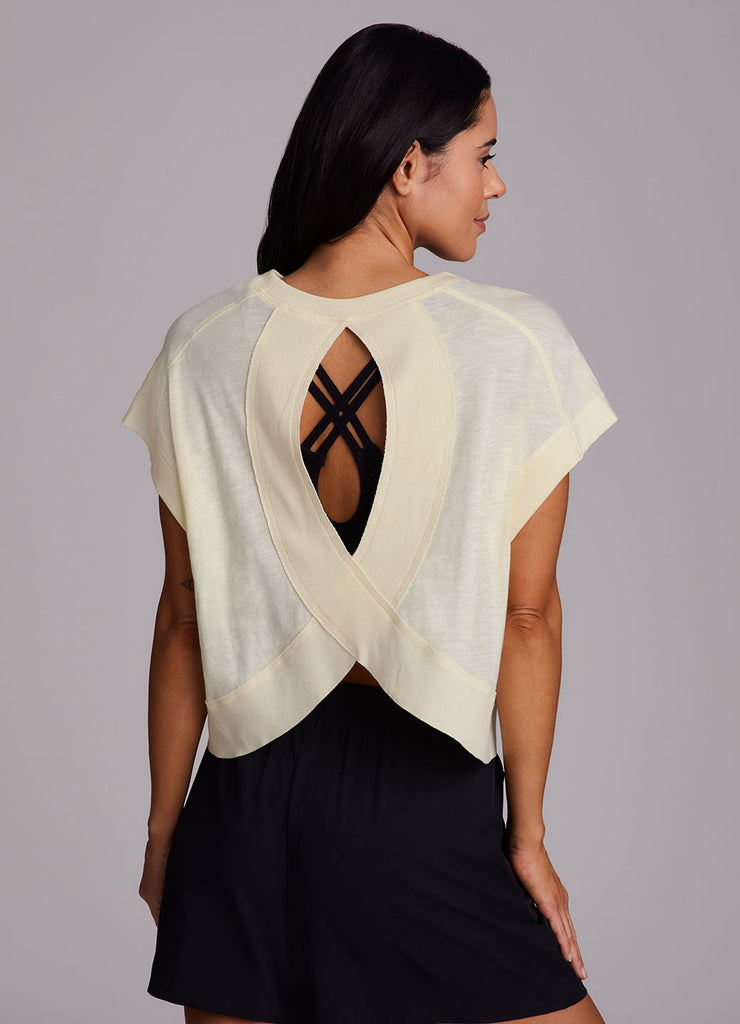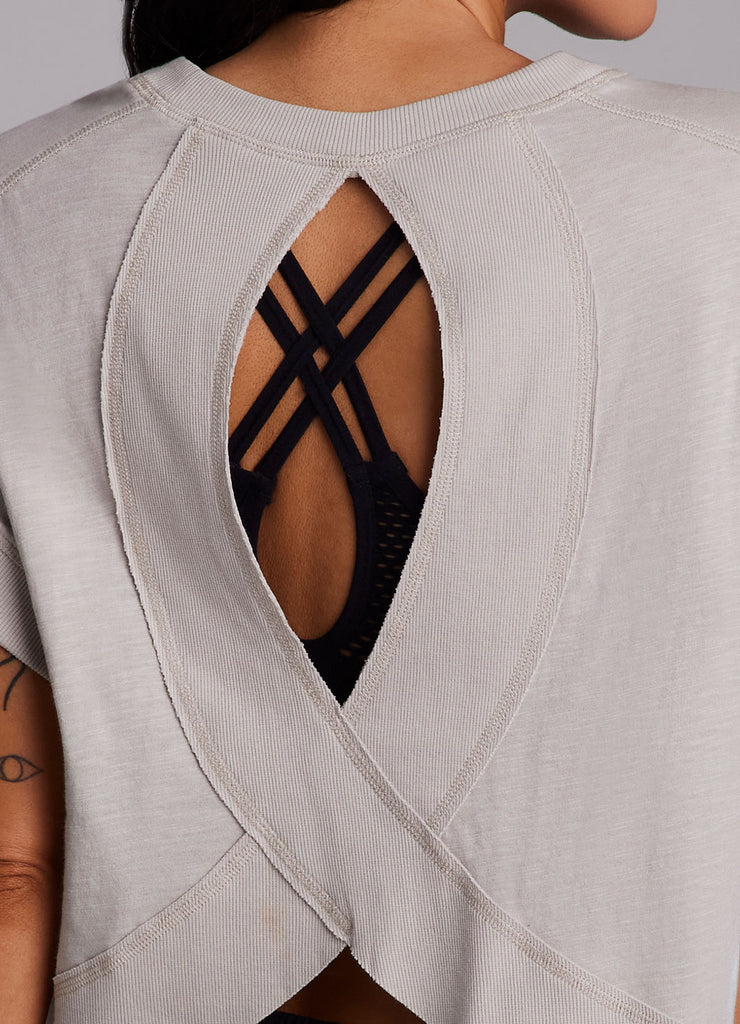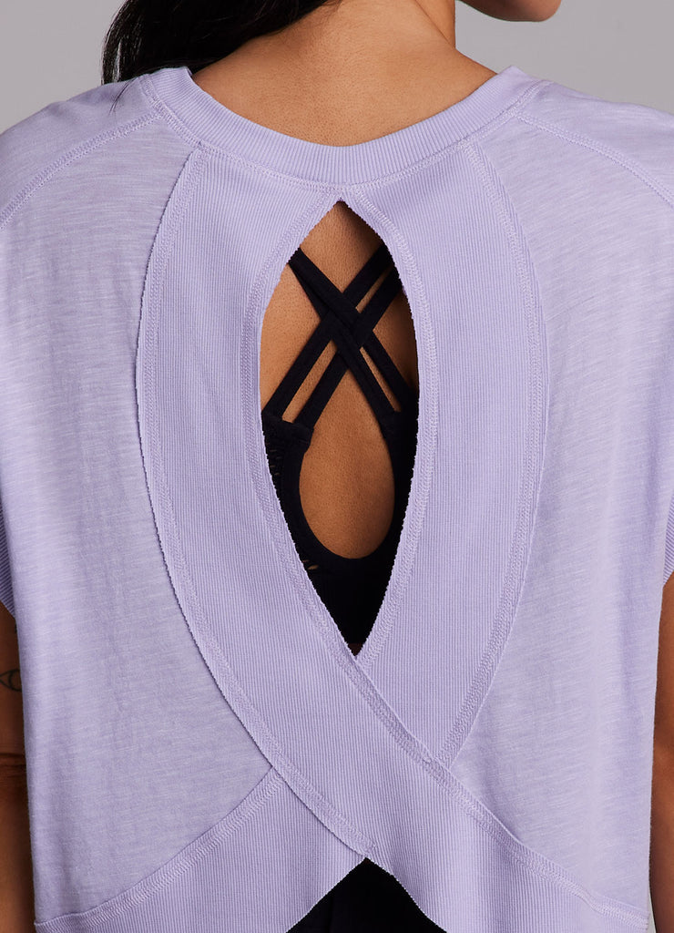 Boasting cotton blend fabric, raw hemline and a fashionable silhouette, our Flow With It Tee is all business in front and party in back. A classic crewneck design combines with a slightly cropped meet-and-greet length, back tulip hemline and a back keyhole cutout that enhances breathability. With its lightweight, soft fabric and breathable fit, this versatile short sleeve top is perfect for any activity whether you're heading to the gym, yoga studio or lunch with friends.