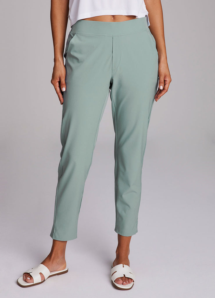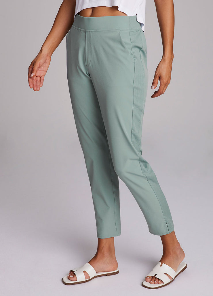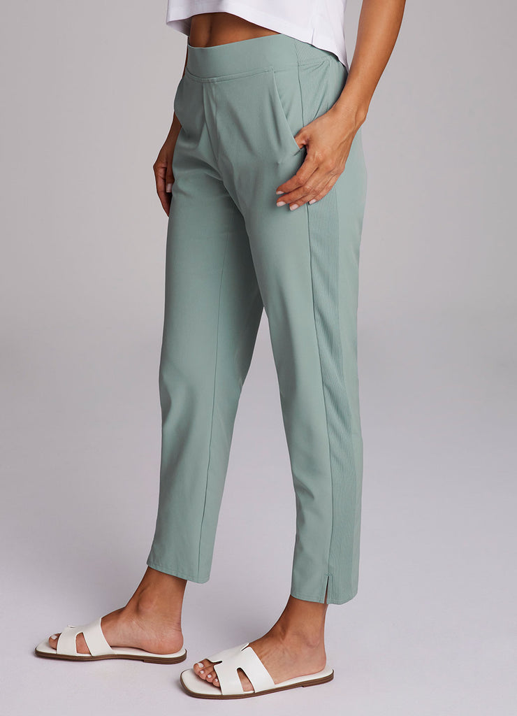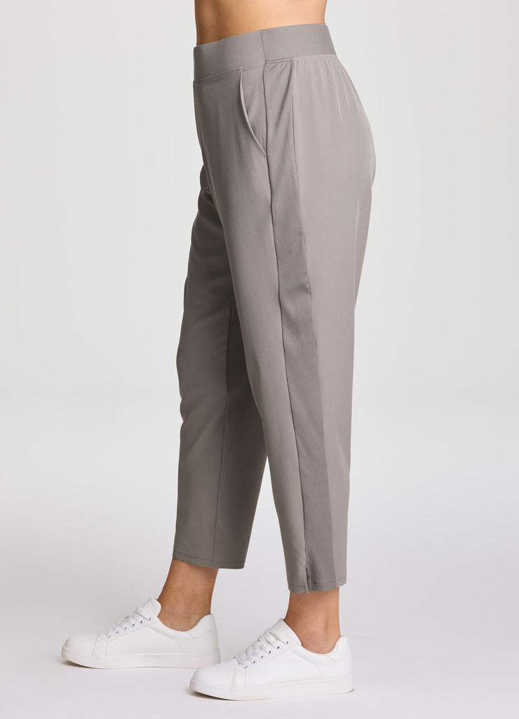 Perfect for everyday wear, traveling, workouts and more, you'll love the Plus Everyday Ribbed Ankle Pant. These versatile ankle length pants are constructed from our breathable, quick drying stretch woven fabric and have a ribbed waistband and side leg detailing. The flat elastic waistband provides both a secure and flattering fit, and sizable side pockets conveniently hold your cell phone and other necessities. Complete with slits at the ankles, faux back pockets and front fly detail, these fashionable pants are a great addition to any wardrobe.
