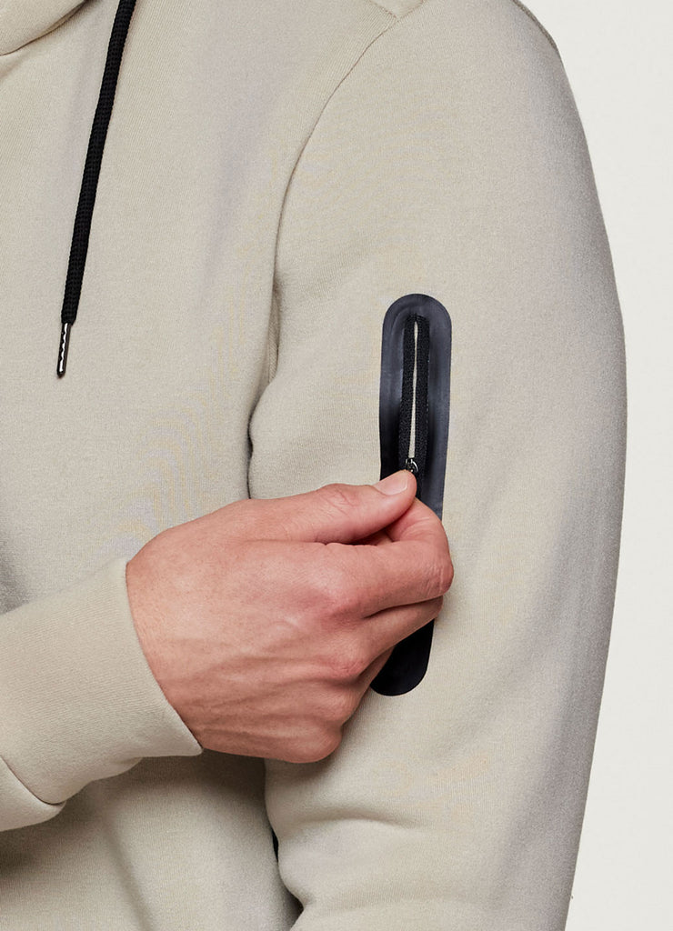 Front kangaroo-style pocket plus a sleeve zipper pocket to store your cell phone, keys and more