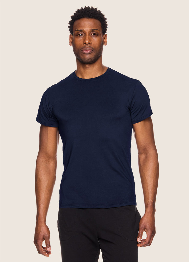 Our men's quick drying crewneck undershirts provide soft, breathable comfort whether you're working out or taking it easy. A classic crew neck, short sleeve design with a body skimming fit and tag-less construction ensures easy layering without irritation for a lightweight t-shirt you can wear as an undershirt or for regular casual wear. Package includes two undershirts.
