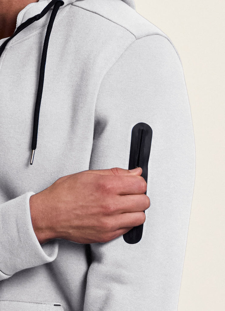 Front kangaroo-style pocket plus a sleeve zipper pocket to store your cell phone, keys and more