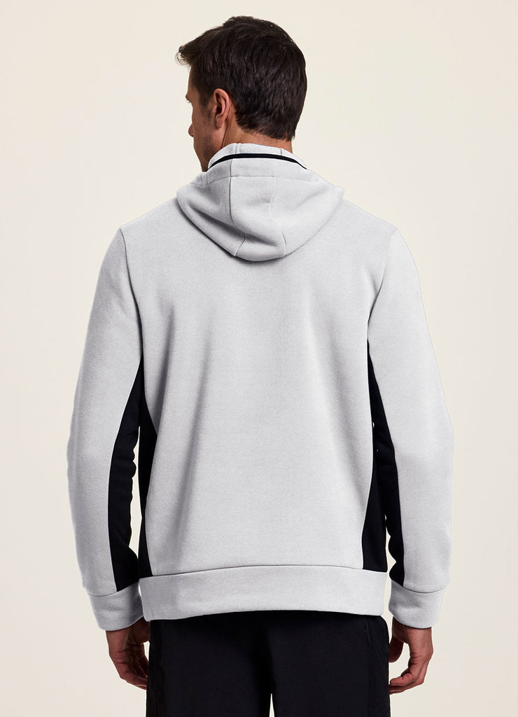 Don’t sacrifice outdoor activities just because it’s cold. Our Prime Contrast Quarter Zip Fleece Sweatshirt helps you perform at your best while giving you a comfortable fit. Its brushed fleece interior keeps you warm and dry while the drawstring hood is adjustable to your liking. Plus, store your small stuff in the sleeve zipper pocket and bigger items in the front kangaroo pocket. Or use it to keep your fingers from freezing… up to you!