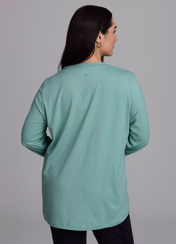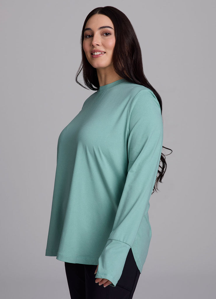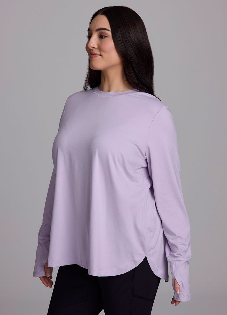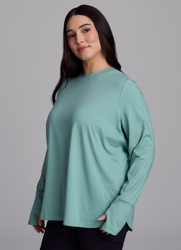 Practice your poses in our Studio Practice Long Sleeve Tunic Tee. With its longer tunic-length design and side slits, this long sleeve t-shirt fits comfortably and provides coverage in the areas you want it most. The upgraded EverydaySoft jersey fabric is ultra soft, stretchy and lightweight while lightly draping your body for a flattering and comfortable fit. Finished with thumbholes to help keep sleeves in place for a full range of distraction-free movement, you can wear this long sleeve top to any workout, hang out and beyond.