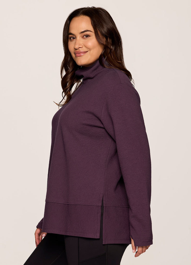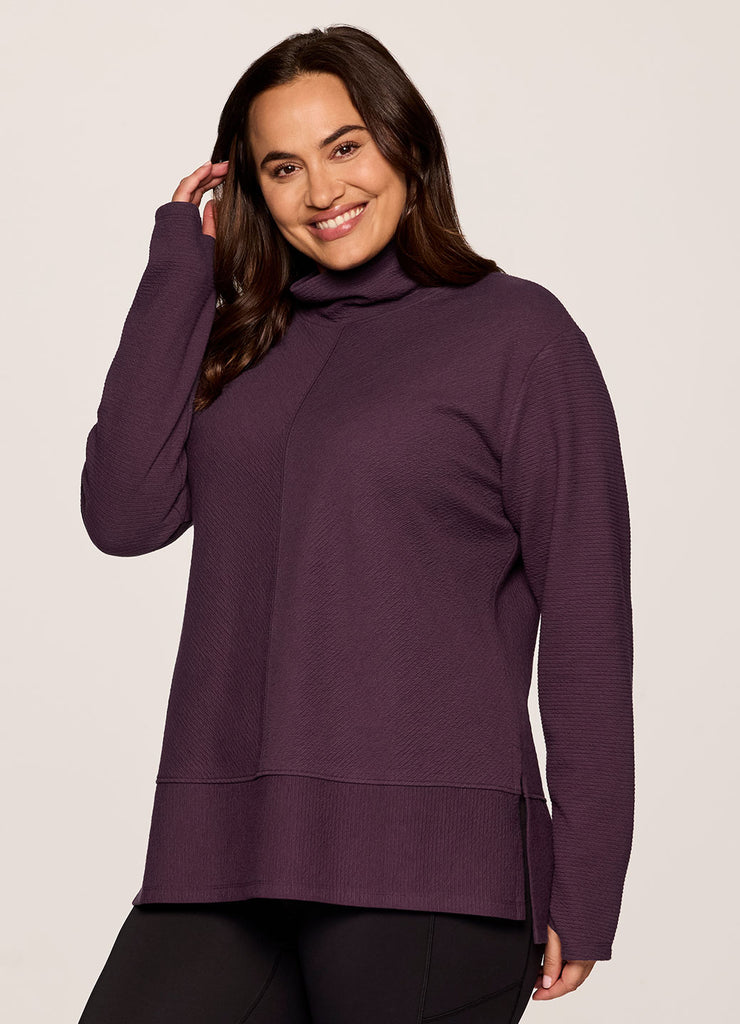 Comfort is a given in the Studio Jacquard Mock Neck Pullover sweatshirt from RBX. Featuring a tunic length for extra coverage and side slits for added comfort and a flattering fit, wear this sweater by itself at the studio or layer up and take it to the streets. With a mock neck design and thumb holes to keep the sleeves in place (or chilly hands), you’ll stay comfy, casual and stylish wherever you go.