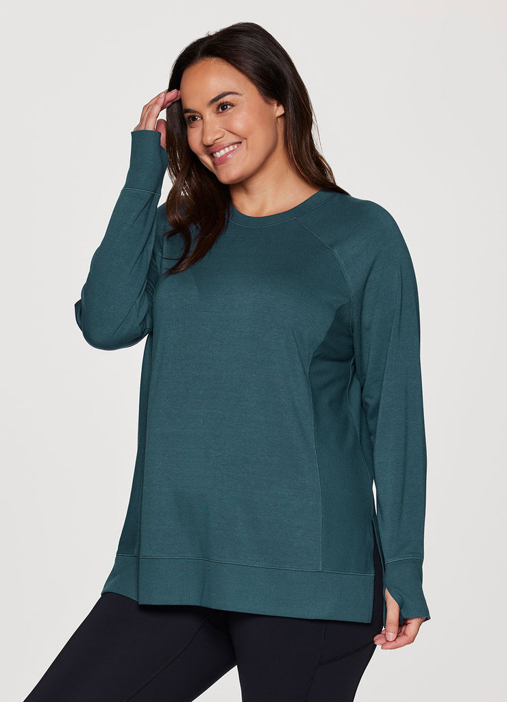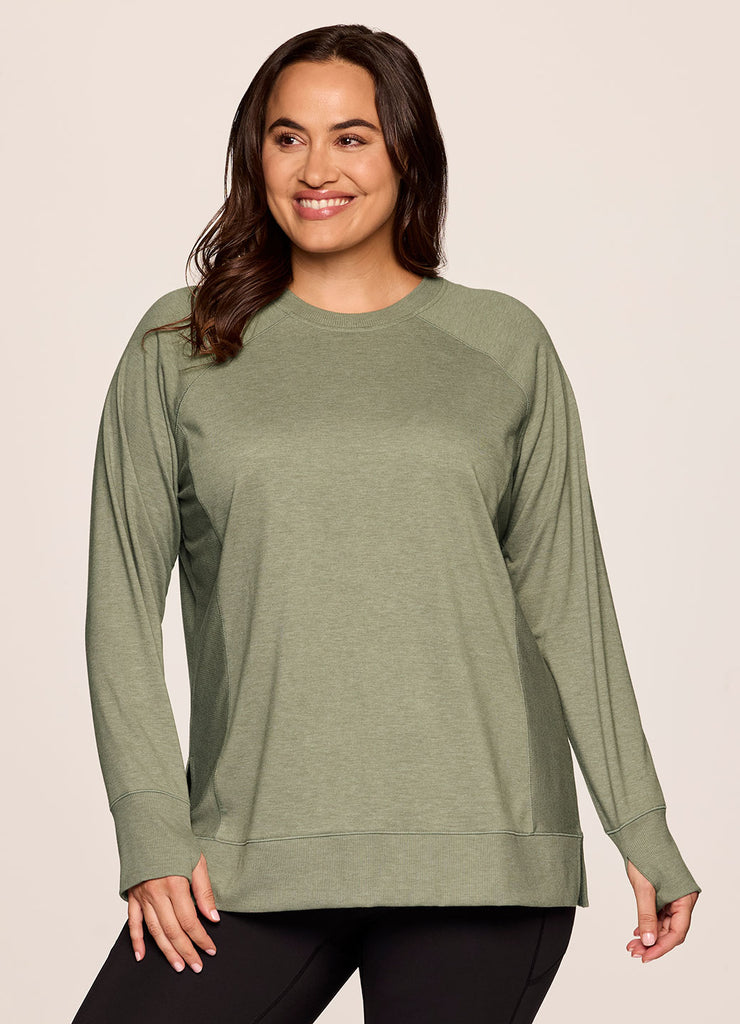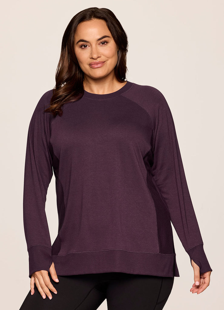 Flaunting a simplistic design and versatile fabric, our Surrey Pullover II is the transitional yoga tunic you've been looking for! A relaxed design with side slits promotes breathability and comfort throughout wear, and its tunic length provides the extra coverage you're looking for. Soft and lightweight french terry fabric with ribbed detailing allows this pullover top to be used during any time of year without it feeling too light or too heavy. A classic crew neckline and thumbholes on each sleeve complete this functional everyday sweater.