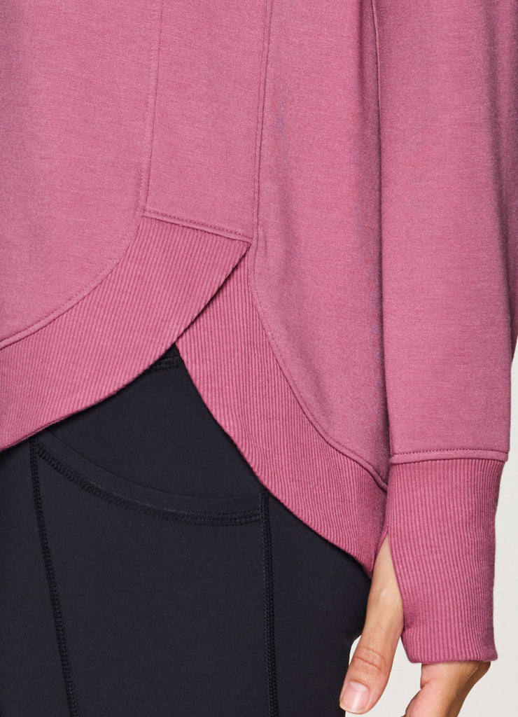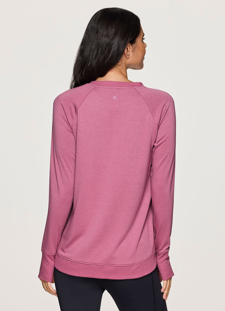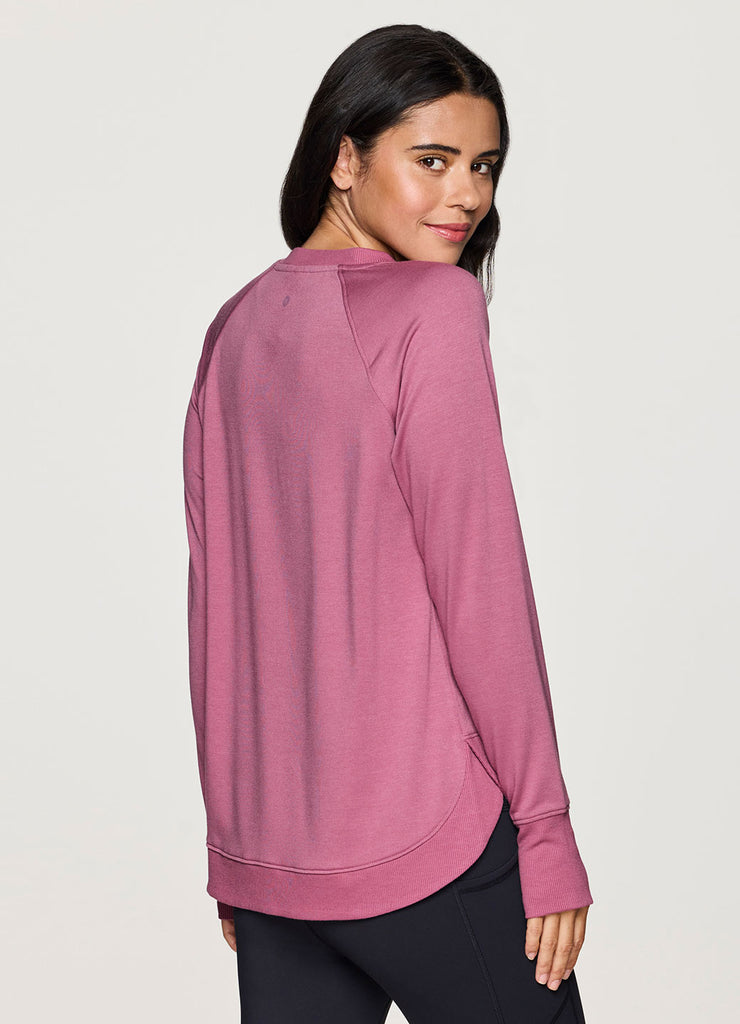 Perfectly lightweight and versatile, our Studio French Terry Sweatshirt is a timeless long sleeve top you can effortlessly take from studio to street. A classic crewneck design combines with a relaxed fit, ribbed trim and curved hemline for an elevated basic you can pair with yoga leggings or a pair of jeans. The super lightweight, heathered baby french terry fabric is soft and breathable and is perfect to layer or wear on its own. Finished with a longer hemline in back and thumbholes to help keep sleeves in place and hands covered, this tunic top is as practical as it is cozy.