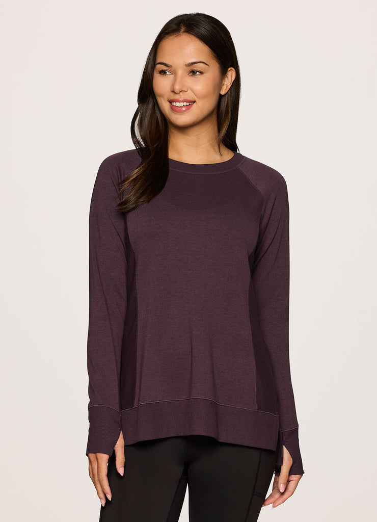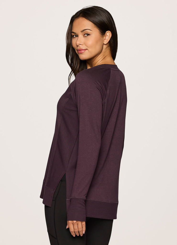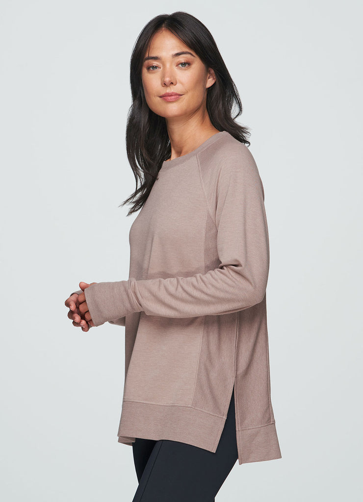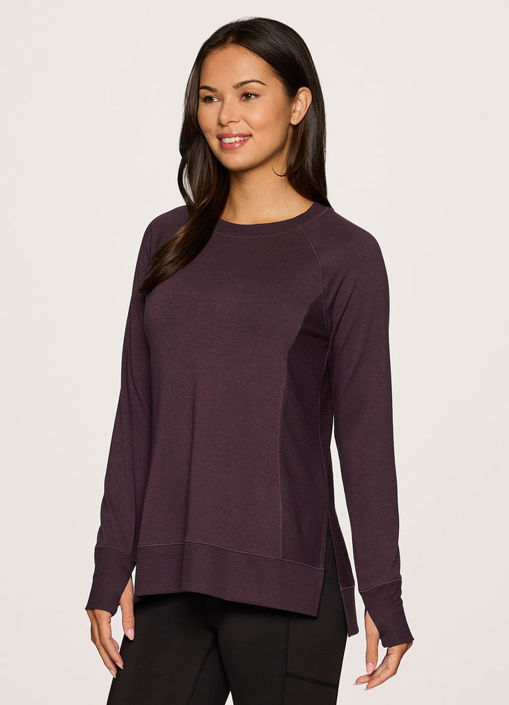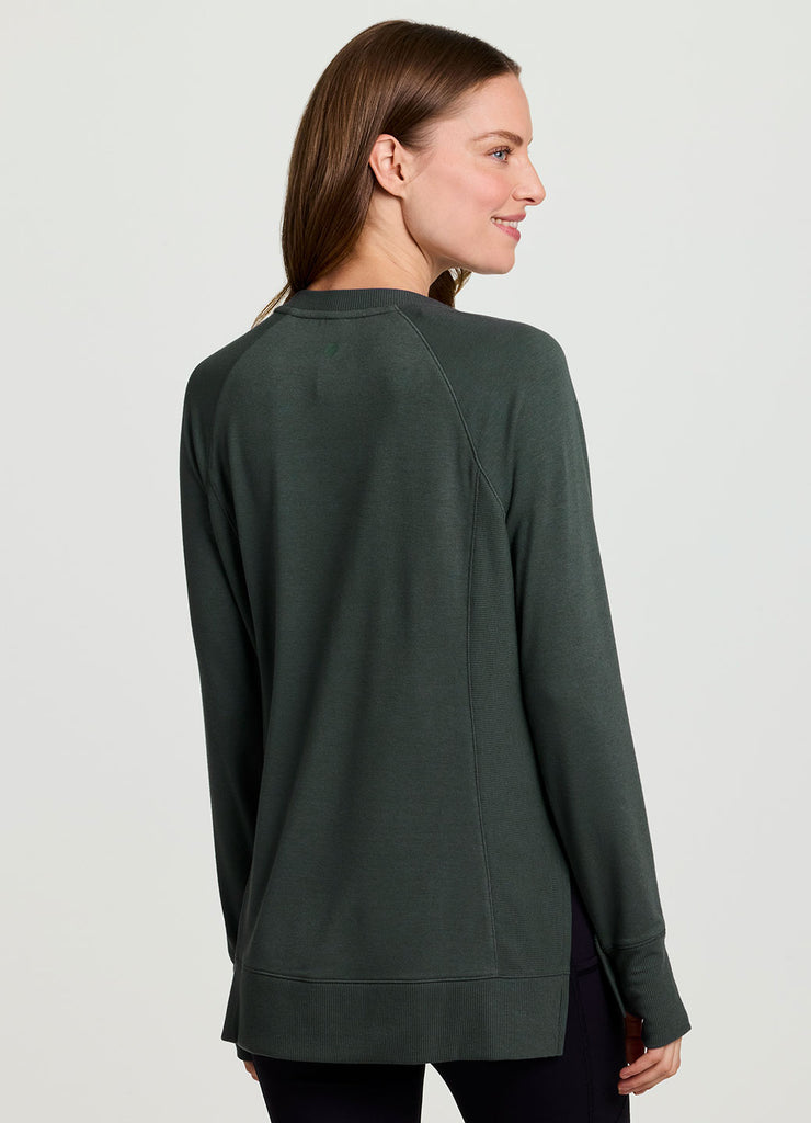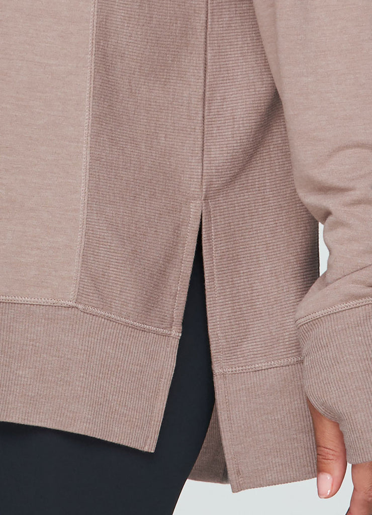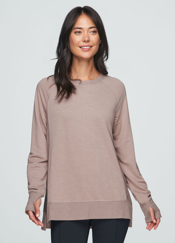 Flaunting a simplistic design and versatile fabric, our Surrey Pullover II is the transitional yoga tunic you've been looking for! A relaxed design with side slits promotes breathability and comfort throughout wear, and its tunic length provides the extra coverage you're looking for. Soft and lightweight french terry fabric with ribbed detailing allows this pullover top to be used during any time of year without it feeling too light or too heavy. A classic crew neckline and thumbholes on each sleeve complete this functional everyday sweater.