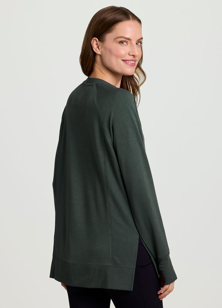 Transitional pullover perfect for yoga and other workouts or for everyday casual wear