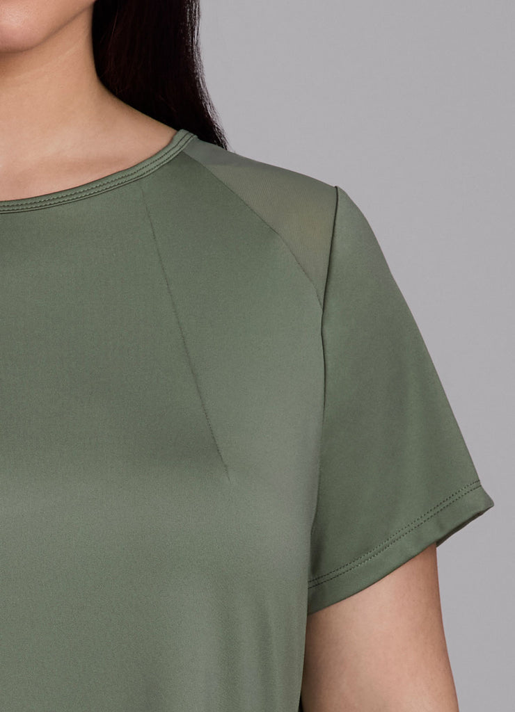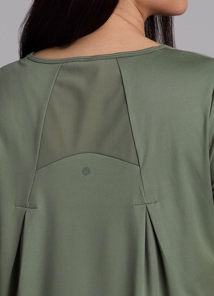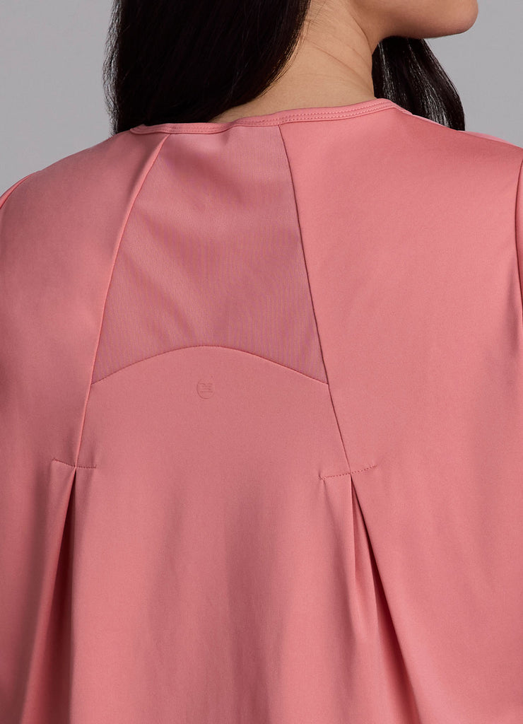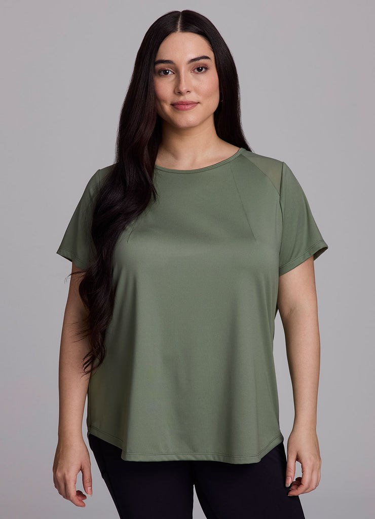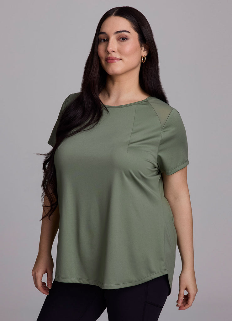 Our On The Run Tee is designed for maximum comfort and performance. Crafted from smooth stretch fabric, this crewneck t-shirt wicks sweat, dries quickly and features sheer mesh panels for added breathability to help keep you cool as the workout heats up. Plus with a regular length and easy relaxed fit, it's perfect to take from studio to street.