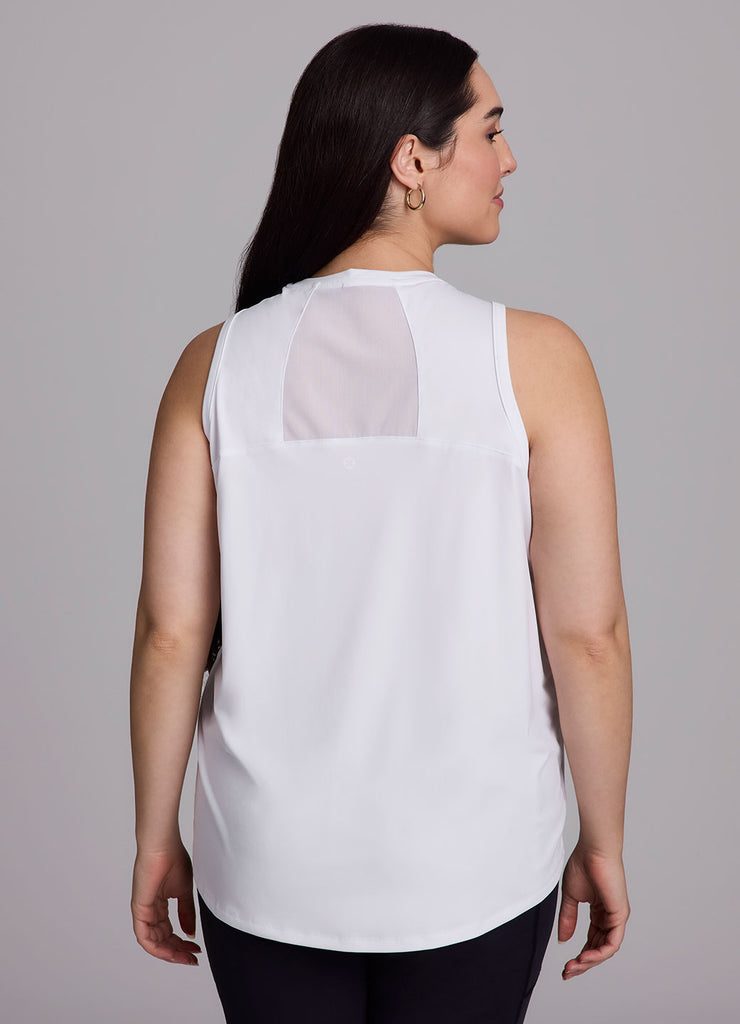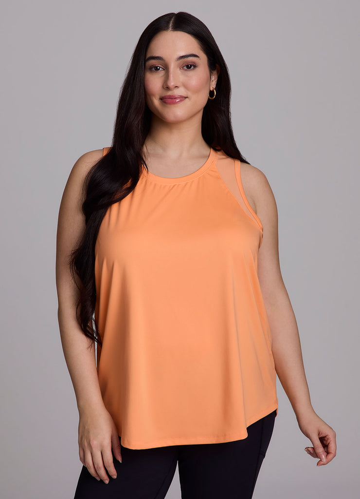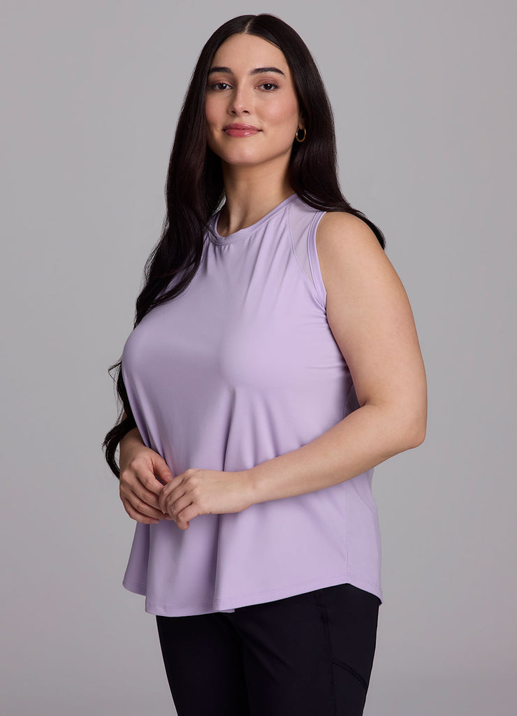 Our On The Run Tank is designed for maximum comfort and performance. Crafted from smooth stretch fabric, this crewneck tank top wicks sweat, dries quickly and features sheer mesh panels for added breathability to help keep you cool as the workout heats up. Plus with a regular length and easy fit, it's perfect to take from studio to street.
