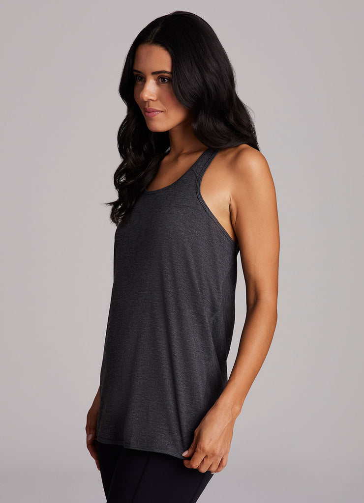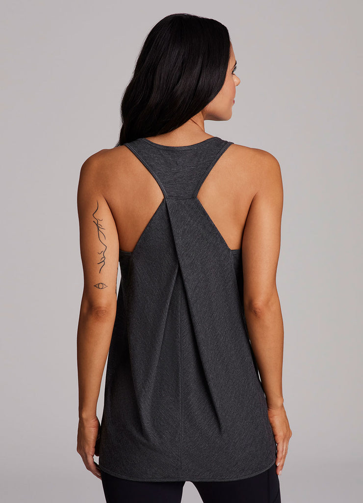 Go beyond the gym in the Prime Relaxed Twist Back Tank Top. This top has a longer length and relaxed fit for extra coverage and comfort. A feminine scoop neckline is paired with a racer back design so that you can power through your workout easily with no restrictions. Constructed from lightweight, soft drapey fabric, this tank is the perfect stand alone piece for any workout or a great layer to throw on while running errands.