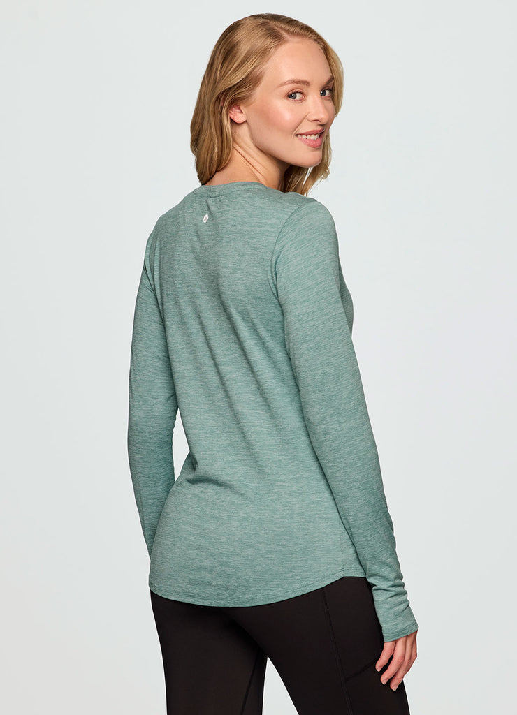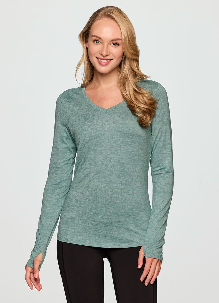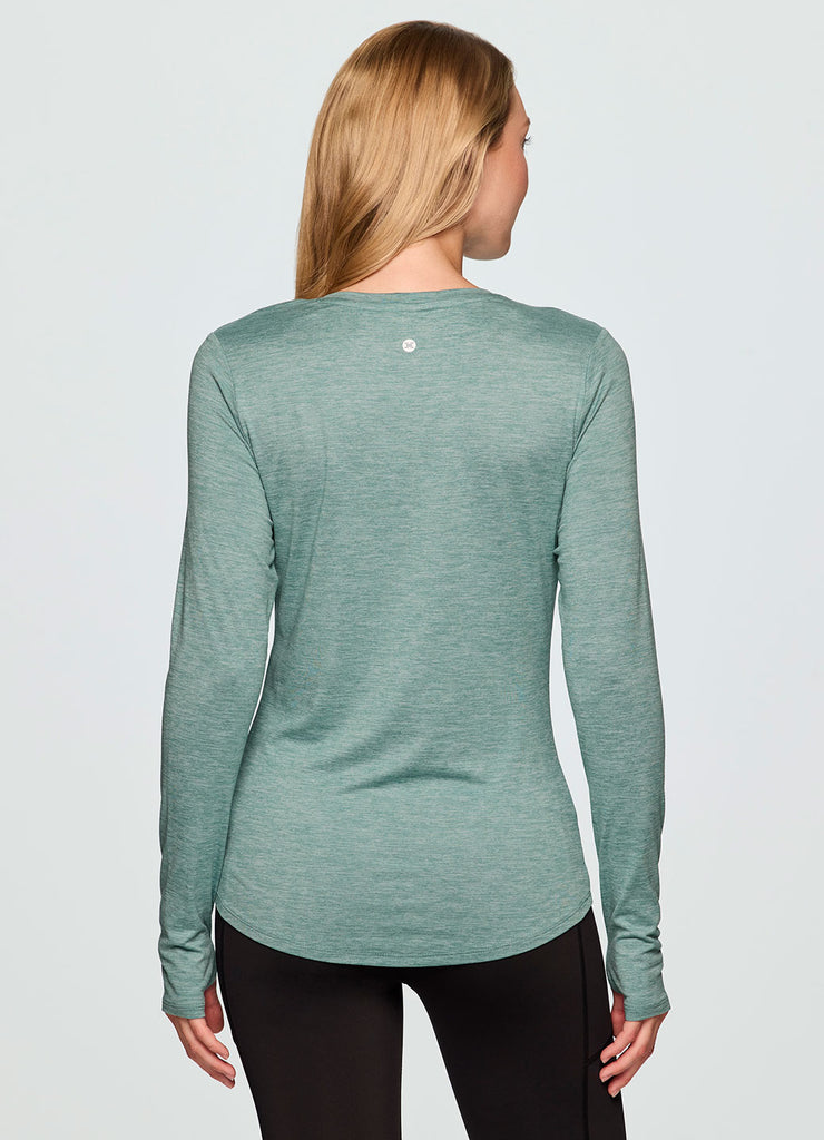 With a flattering body skimming fit that's complemented by a v-neckline and buttery soft fabric, our Stratus Run It Out Tee is the elevated athleisure top you can wear anywhere. Constructed from a lightweight, super soft fabric with a touch of spandex in it, this long sleeve tee is ultra comfortable and retains its shape wear after wear. It features a subtle all-over striated pattern and a hemline that's slightly longer in the back for added coverage. From the yoga studio to lunch with friends, this versatile fitted long sleeve workout shirt will quickly become a favorite in your athleisure wardrobe.